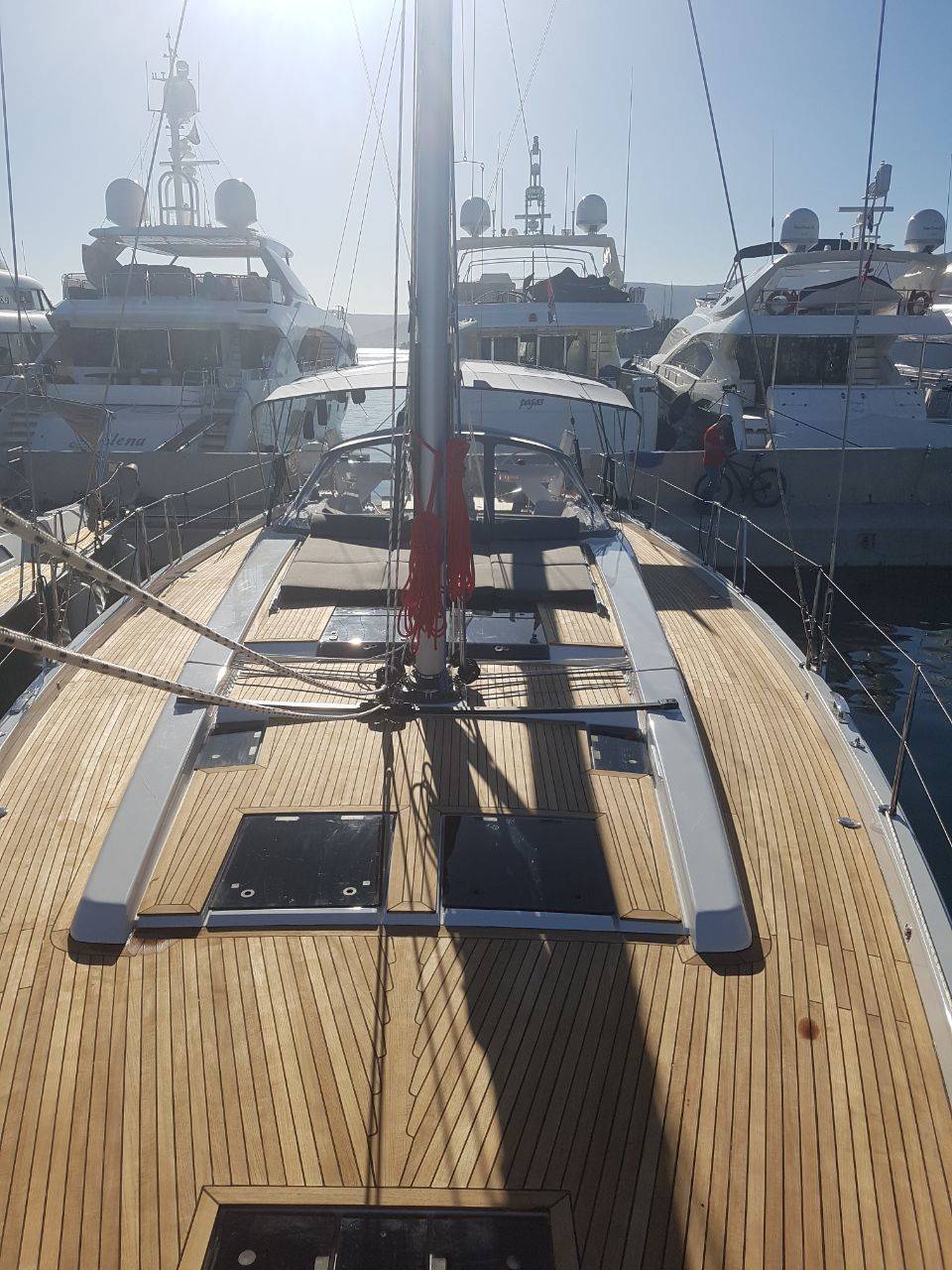 A2, B2, C2, D1, E1 layout option, Italian Oak furniture, Noce Nero floorboardsMonte Carlo upholstery, Worktop in galley-Corian Vanilla, Salon table convertible to double berth, Coffee machine, 2 x LEWMAR 65 EST electrical halyard winches, Hydraulic bathing platform incl. remote control, Teak deck, 2 helmsman seats covered with teak, Inmast Furling system, Bimini top, Sprayhood, Generator, Air Condition, Electrical toilette pumps, Additional freezer-front opening, Radio CD/USB player with salon and cockpit speakers, LED TV 32’’ with Glomex antenne, Anchor chain counter and remote control in cockpit, Sunbed cushions on coachroof