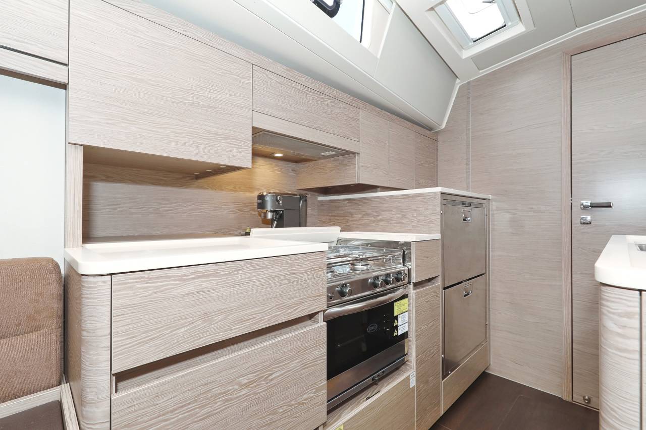 The new Hanse 548 features a luxurious loft of the crème de la crème. At a length of more than 16 m and a breadth of 5 m, it offers a new level of spaciousness. It is the perfect yacht for a relaxing voyage to the world’s most breathtaking bays.Our team of designers were inspired by the element Earth during the development of the Hanse 548. The clear, modern hull shape and interior build a sublime contrast to the natural materials and warm hues. Choose from ten different layout below deck. Regardless of which you opt for, excellent sailing performance and handling are a given.